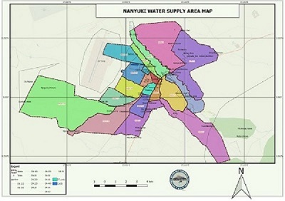 The service area spanning 286km2 is divided into three major blocks namely: Nturukuma, SweetWaters and Central Business District (CBD). The three blocks are further divided into 19 blocks for purpose of effetive and efficient service provision - meter reading, billing, disconnections and reconnections